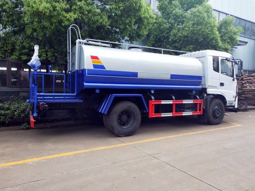 上裝配置:罐體容積為15立方灑水車,罐體鋼板為4mm碳鋼Q235材質(zhì),罐內(nèi)隔板具有防波作用,以減輕汽車行駛時(shí)罐體液體沖擊,罐體及整車外形尺寸按照公告。帶大功率專用灑水泵,泵可自吸自排,整車前沖、后灑、側(cè)噴、帶65消防接口,后平臺(tái)帶綠化灑水車水炮,灑水炮可全方位旋轉(zhuǎn),可連續(xù)調(diào)成直沖狀、大雨、小雨、毛毛雨;前封頭帶水位計(jì),后平臺(tái)主管路帶1寸澆花接口,后爬梯。平臺(tái)后部帶小安全告知牌:“隨時(shí)停車,注意安全”,帶兩根水管及陰陽(yáng)端。罐體顏色:上白/下藍(lán),銀灰/銀藍(lán),罐體兩側(cè)噴“灑水車、綠化噴灑車”字樣,貼反光標(biāo)示。灑水車可加裝前沖后灑氣動(dòng)閥駕駛室控制、可加裝霧炮機(jī)組發(fā)電機(jī)組噴霧降塵裝置、車頭可加裝推雪雪鏟、雪滾裝置街道、公路除雪等。