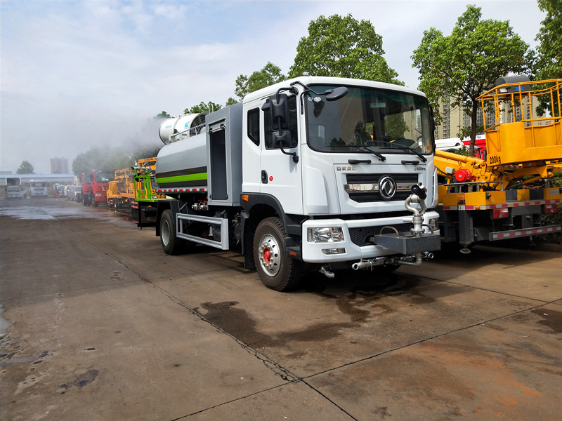 抑塵車吸程≧7米,灑水寬度≧14-16米,射程≧25-40米,引水時間<5min,流量60m3/h。前沖(噴)、后灑、帶側噴(花灑)、帶后工作平臺、平臺上安裝綠化灑水高炮(炮噴射形狀可調節:直沖、大雨、中雨、毛毛雨、霧狀、可連續調節,360°旋轉),配消防接口,自流閥,濾網,帶自吸自排功能。配備大功率專用灑水泵,泵可自吸自排,安裝過濾網,帶消防接口,可通過消防栓進水,帶自流閥,此車尾部加裝大功率農藥噴灑炮,噴灑狀態霧狀,有效射程15-45米,外部平臺帶獨立的機組。