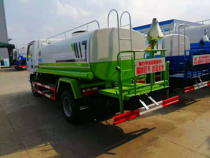 上裝配置: 罐體材質采用4mm厚武鋼碳鋼Q235專用容積板制作,灑水車罐體內具有防波板層,配大功率不銹鋼專用灑水泵;前沖(噴),后灑,帶側噴,高位花灑,后置工作平臺,平臺上安裝綠化灑水炮,灑水炮可全方位旋轉可連續調成直沖狀、大雨、小雨、毛毛雨;帶安排護欄,帶自流閥,帶消防接口,自吸自排,罐前量水管(觀察罐內水位)、罐體后帶爬梯,罐體表面雙層油漆工藝,防銹、耐腐蝕;其它標配。