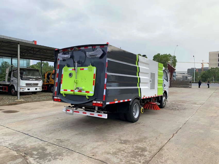 該掃路車采用東風多利卡(軸距3308)二類底盤改裝,加裝副發動機、風機、清水箱、垃圾箱、左右立掃、后置吸盤,掃盤降塵系統,液壓系統、專用裝置電控系統和副車架等改裝而成(可加裝前沖后灑)。