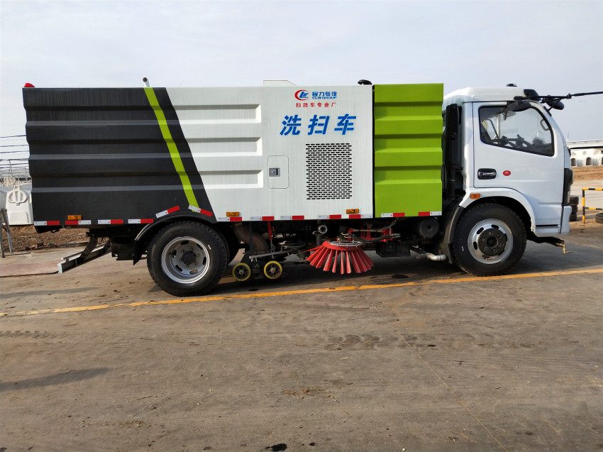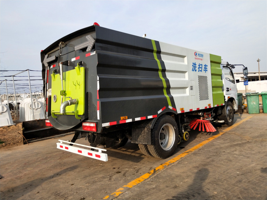 清掃車商品描述:東風多利卡國六洗掃車:洗掃車采用東風多利卡洗掃車專用底盤,加裝副發動機、風機、清水箱、垃圾箱、左右立掃、后置吸盤,掃盤降塵系統,液壓系統、專用裝置電控系統和副車架等改裝而成 。