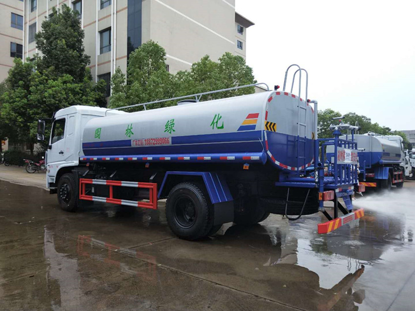 東風15噸灑水車性能簡介:吸程≧7米,灑水寬度≧14-16米,射程≧25-40米,引水時間<5min,流量60m3/h。前沖(噴)、后灑、帶側噴(花灑)、帶后工作平臺、平臺上安裝綠化灑水高炮(炮噴射形狀可調節:直沖、大雨、中雨、毛毛雨、霧狀、可連續調節,360°旋轉),配消防接口,自流閥,濾網,帶自吸自排功能。