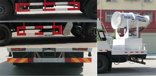 專用裝置為抑塵霧炮,用于城市抑塵,整車長度/前懸/軸距/后伸的對應關系為(mm): 8870/1440/;側防護及后下部防護裝置均采用Q235A材質,均采用焊接連接,后下部防護尺寸 :120×50(mm),離地面高度500mm.裝備ABS,型號/生產廠家:3631010-C2000/東科克諾爾 商用車制動系統(十堰)有限公司,ABS-E 4S/4M/威伯科汽車控制系統(中國)有限公司.當抑塵 距離為60米及80米抑塵霧炮時,后伸為720mm,當抑塵距離為80米和100米抑塵霧炮時,后伸為 920mm.隨底盤選裝駕駛室.選裝不帶顆粒捕捉器圖片.選裝霧炮圖片.該車罐體長×寬×高為(mm): 2770×2460×1580(3070×2460×1580),有效容積:8.72立方米. |