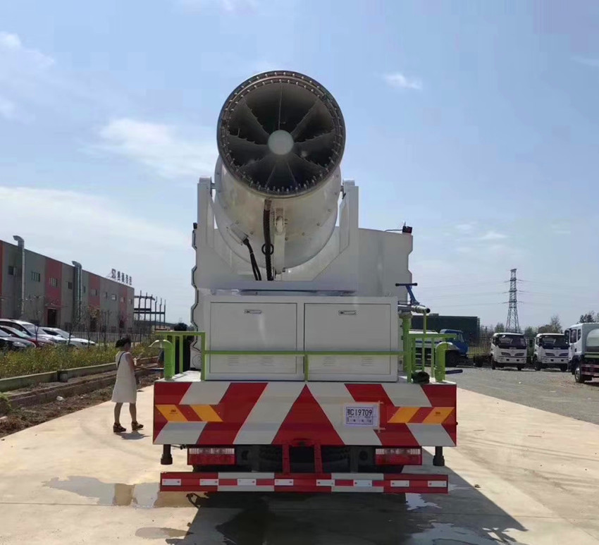 霧炮車專用配置: 配備全國評比質量第一的(日本技術)大功率專用灑水泵、取力器、球閥、濾網、輸水管道、灑水裝置等部件組成。水泵、取力器、球閥、濾網均為國家標準產品,具有性能優良,工作可靠、效率高、流量大、維修方便等特點。