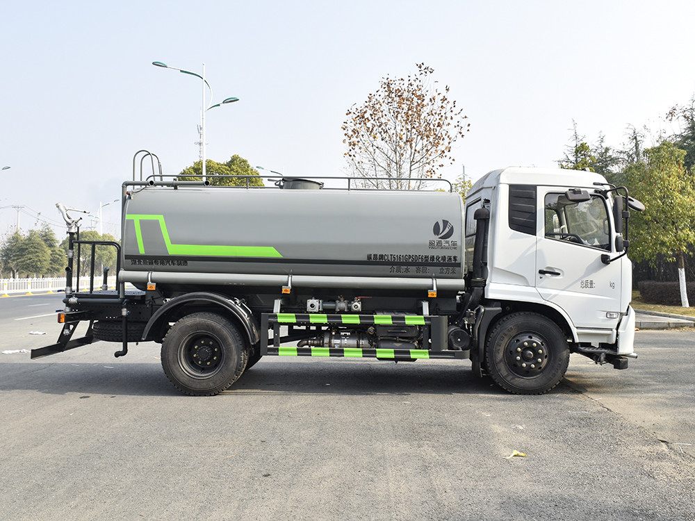 東風(fēng)天錦 12 噸灑水車整車型號 CLT5161GPSDF6 型綠化噴灑車 2 發(fā)動機型號 DDi47E210-60 3 發(fā)動機馬力/功率 龍擎 210 馬力/154KW 4 發(fā)動機排量 4750ML 5 變速箱 法士特 8 檔(帶高低檔) 6 輪胎規(guī)格 9.00 鋼絲胎 7 軸距 3950 8 總質(zhì)量 16200KG 9 整備質(zhì)量 6300KG 10 額定載質(zhì)量 9705KG 11 整車尺寸(長×寬×高) 7.8*2.5*3.2 12 罐體容積 12 方 13 燃料種類 柴油 14 排放標(biāo)準 國六 15 水泵型號 60/90 16 罐體材質(zhì) Q235 碳鋼