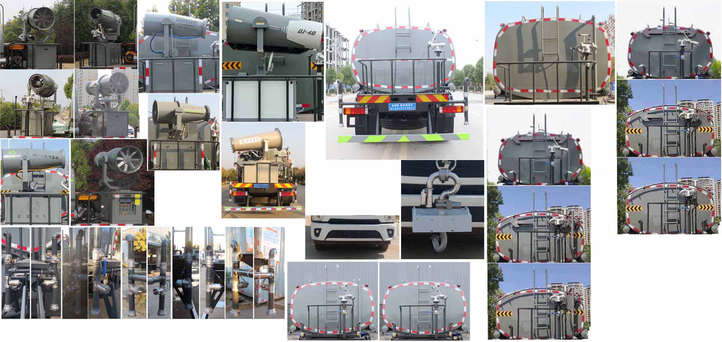 該車主要用于城鄉園林綠化噴灑作業;主要裝置為罐體及噴灑裝置.罐體總容量:9.77立方米,罐體有效容積:9.3立方米;罐體外形尺寸(長×長軸×短軸)(mm):4000×2300×1540,4200×2300×1450.ABS系統生產廠家:西安正昌電子股份有限公司,型號:ZQFB-V;側、后防護材料均為:Q235碳鋼,連接方式均為:螺栓連接,后部防護截面尺寸(mm):120×50,后部防護離地高度(mm):470.僅采用底盤4100mm軸距改裝.選裝前部不帶電子霧炮,選裝電子霧炮樣式.當前部不帶電子霧炮時,車輛長度7850mm,7650mm,無前伸;當前部選裝電子霧炮時,車輛長度8350mm,8150mm,前伸500mm.選裝后部大工作平臺.隨底盤選裝駕駛室.選裝自動球閥安裝位置,選裝噴灑裝置樣式,選裝箭頭燈裝置,選裝弧形噴灑裝置,選裝后部樣式.后部作業燈僅在作業時開啟,車輛行駛過程中不可開啟.