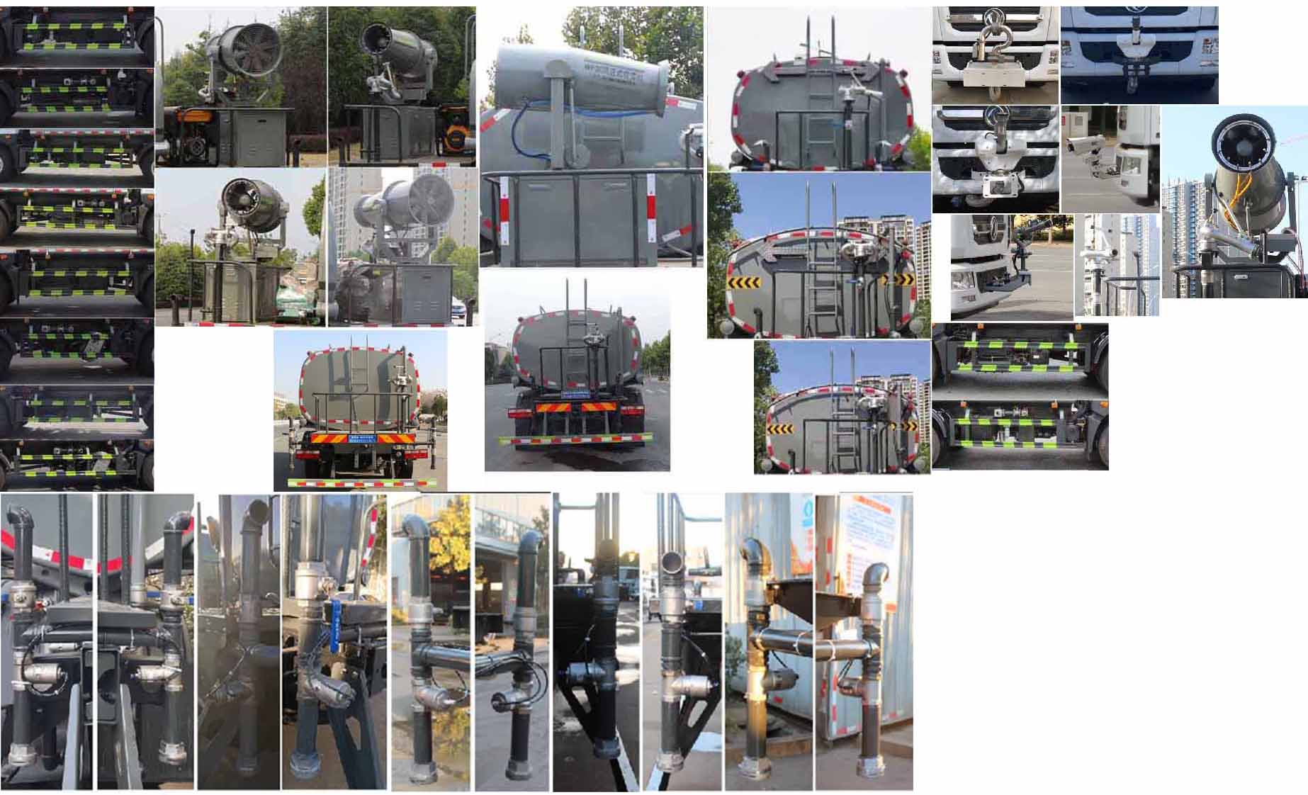 ABS型號:J ABS,ABS/ASR-24V-4S/4M;ABS生產企業:焦作博瑞克控制技術有限公司,襄陽東風隆誠機械有限責任公司;隨底盤選裝駕駛室,選裝油箱電瓶位置,選裝噴灑裝置;側、后防護材料均為:Q235碳鋼,連接方式均為:螺栓連接,后部防護截面尺寸(mm):120×50,后部防護離地高度(mm):460;罐體總容量:11.56立方米;罐體有效容積:11立方米;罐體外形尺寸(長×長軸×短軸)(mm):4000×2450×1730,4000×2300×1540;4200×2450×1650,4200×2300×1450;專用功能及裝置:該車主要用于城鄉園林綠化噴灑,噴藥;主要裝置為水罐及噴灑裝置;選裝噴霧裝置樣式。選裝限速裝置,限速89。選裝水炮支架位置,選裝弧形噴灑裝置,選裝箭頭燈裝置,選裝前部自動炮裝置樣式,前伸500mm,整車長度為8000,8250mm。