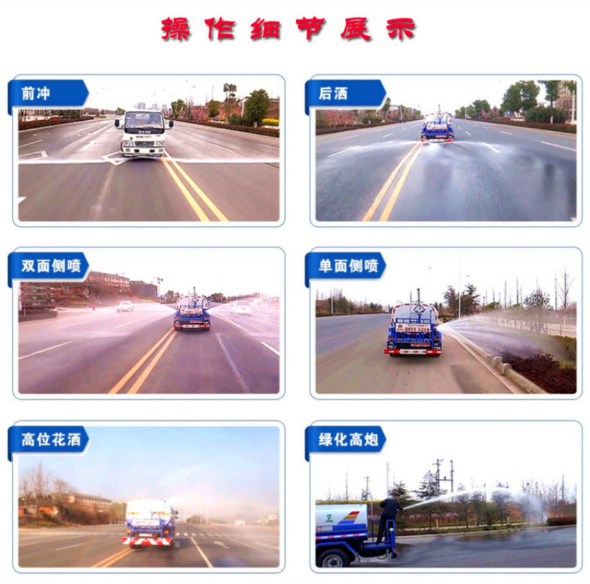 吸程≧7米,灑水寬度≧14-16米,射程≧25-40米,引水時間<5min,流量60m3/h。前沖(噴)、后灑、帶側(cè)噴(花灑)、帶后工作平臺、平臺上安裝綠化灑水高炮(炮噴射形狀可調(diào)節(jié):直沖、大雨、中雨、毛毛雨、霧狀、可連續(xù)調(diào)節(jié),360°旋轉(zhuǎn)),配消防接口,自流閥,濾網(wǎng),帶自吸自排功能。配備大功率專用灑水泵,泵可自吸自排,安裝過濾網(wǎng),帶消防接口,可通過消防栓進水,帶自流閥,隨車選裝20米綠化卷盤,可噴灑農(nóng)藥,罐體金屬漆。罐體有橢圓和方圓罐兩種,可根據(jù)用戶的要求定做。