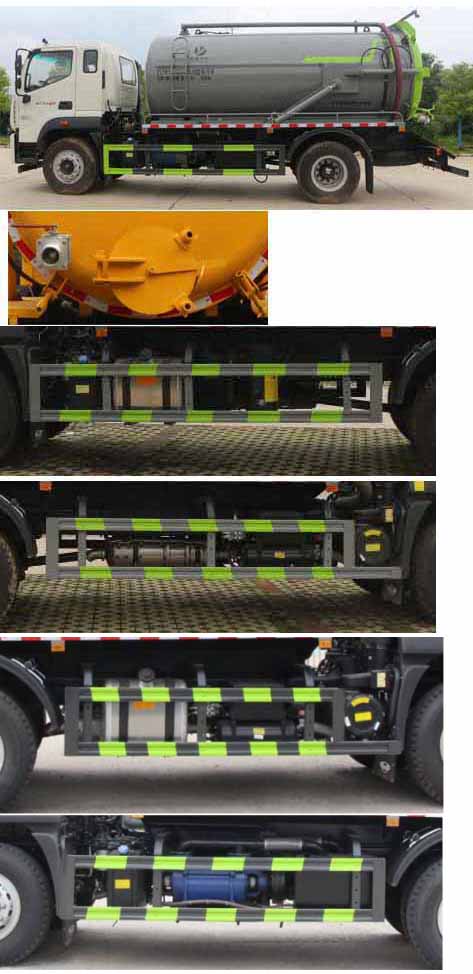 該車用于吸除水坑、下水道里污濁物;主要裝置有罐體及吸污泵總成;罐體總容量:11.55立方米,罐體有效容積:11立方米;罐體外形尺寸(總長×直徑)(mm):4800×1800;ABS控制器型號為CM4XL-4S/4M,ABS控制器生產企業為廣州瑞立科密汽車電子股份有限公司;側、后防護材料均為:Q235碳鋼,連接方式均為:螺栓連接,后部防護截面尺寸(mm):120×50,后部防護離地高度(mm):490.僅采用底盤3950mm軸距改裝.該車具有舉升功能,隨底盤選裝駕駛室,選裝后部出口樣式;選裝左側樣式,選裝油箱出口及電瓶位置。