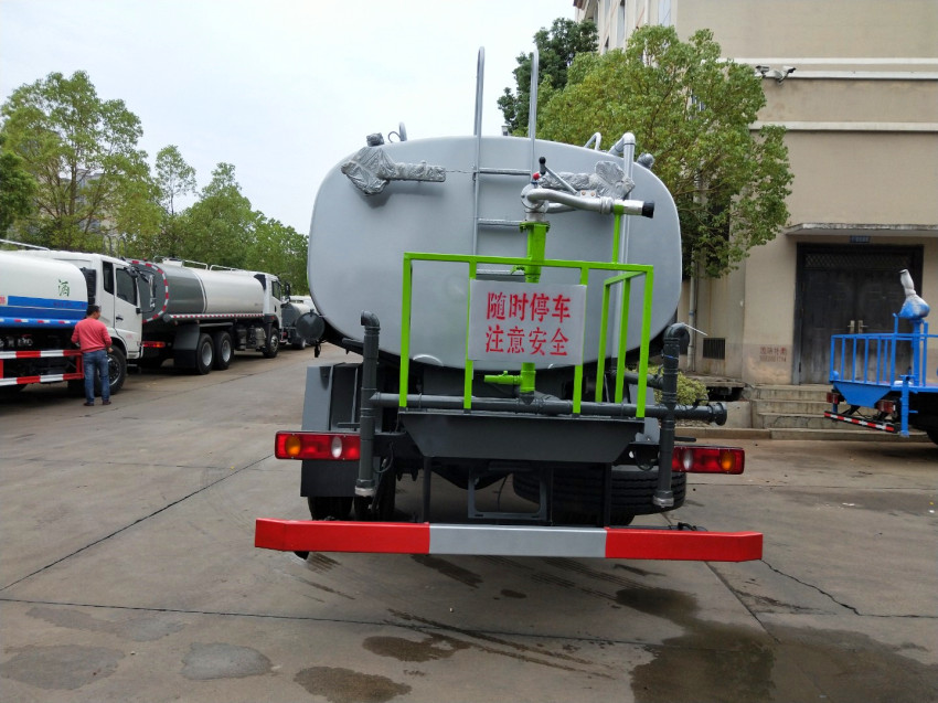 湖北程力灑水車新款國六排放東風天錦14噸灑水車專用功能為:前沖后灑,側噴,罐體后帶工作平臺加護欄,平臺上安裝綠化灑水高炮,射程28米左右,可調節多種形態(大雨、中雨、霧狀),配備大功率專用灑水泵,泵可吸自排,帶自流閥,帶消防接頭,帶過濾裝置,兩根吸水管。另外該車可選裝后部帶弧形噴霧和箭頭指示燈 、后部帶箭頭指示燈、后部帶弧形噴霧裝置。