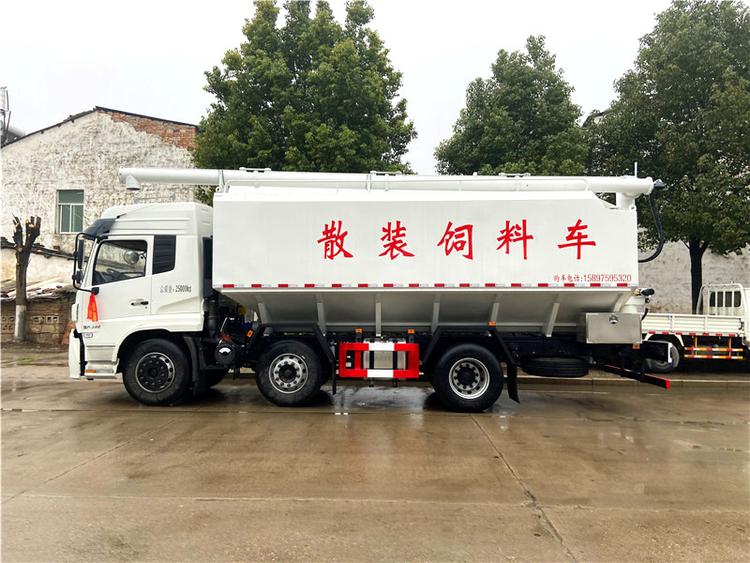 風多利卡12方散裝飼料運輸車整車3條電動絞龍卸料,罐體內分為三個倉,可獨立控制各分倉卸料順序和速度,有效容積12方,可裝6-8噸,標配3倉,電動絞龍卸料,卸料管傾斜70度, 垂直卸料高度8.5米,整車卸料完用時20分