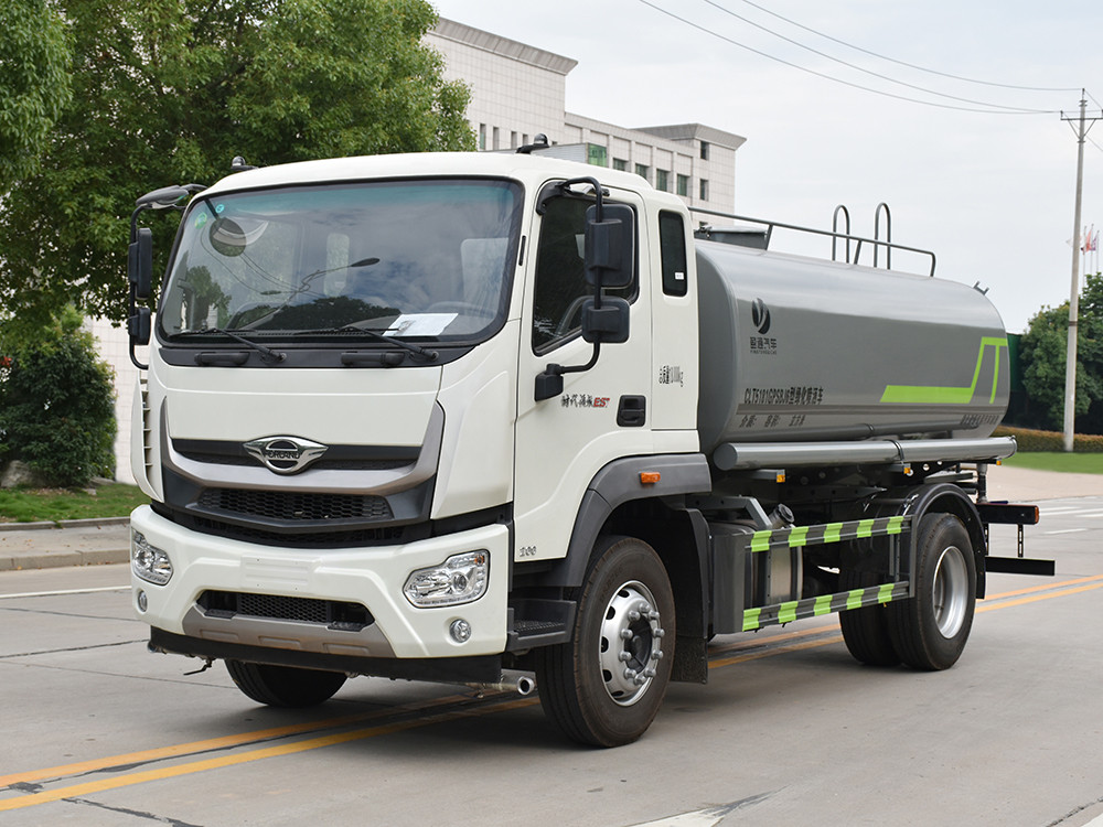 該車主要用于城鄉園林綠化,路面噴灑,除塵和降溫;主要裝置為罐體及噴灑裝置;罐體總容量:11.4立方米,罐體有效容積:10.86立方米,罐體外形尺寸(長×長軸×短軸)(mm):5200×2300×1400;ABS型號為CM4XL-4S/4M,生產廠家為廣州瑞立科密汽車電子股份有限公司;隨底盤選裝駕駛室;側、后防護材料均為:Q235碳鋼,連接方式均為:螺栓連接,后部防護截面尺寸(mm):120×50,后部防護離地高度(mm):470.采用4500mm軸距。選裝限速裝置,限制最高車速80km/h。選裝后部箭頭燈,選裝后部弧形噴灑裝置,選裝油箱電瓶安裝位置。選裝噴灑裝置樣式,選裝水炮支架位置,選裝自動球閥安裝位置。