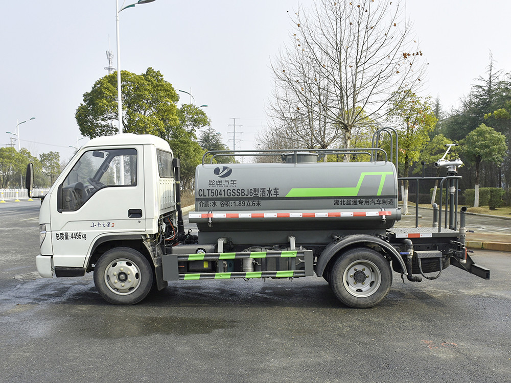 2方灑水車底盤配置: 發動機全柴 115 馬力,軸距 2850,萬里揚 5 檔箱,6.50 鋼絲胎、 動力轉向、離合助力、TBOX、油剎,電動玻璃
