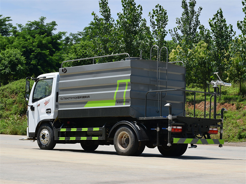 東風(fēng)7方藍(lán)牌灑水車產(chǎn)品簡述:縱昂牌 CLT5042TDYEQ6 型多功能抑塵車標(biāo)配前噴(鴨嘴)、后對 沖、后灑、側(cè)噴、后置式工作平臺,平臺上配置綠化水炮可 360 °旋轉(zhuǎn),既可 以調(diào)成柱狀,也可以調(diào)成霧狀),配備優(yōu)質(zhì)大功率專用灑水泵(可自吸自排, 可從河里或池塘抽水到罐體),取力器,雜物過濾網(wǎng),消防接口,自流球閥系統(tǒng)、 取力器、球閥、濾網(wǎng)均為國家標(biāo)準(zhǔn)產(chǎn)品,主管道加粗,法蘭墊、法蘭盤加厚,大通徑球閥。整體具備性能優(yōu)良安全可靠、效率高、流量大、維修方便等特點(diǎn)