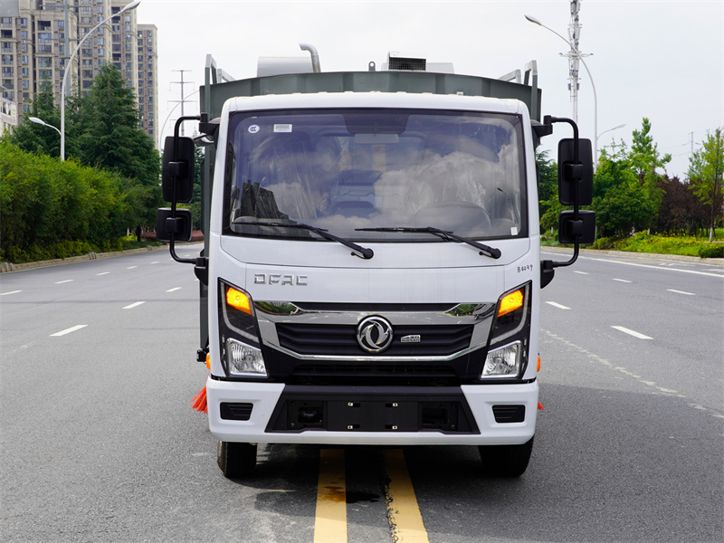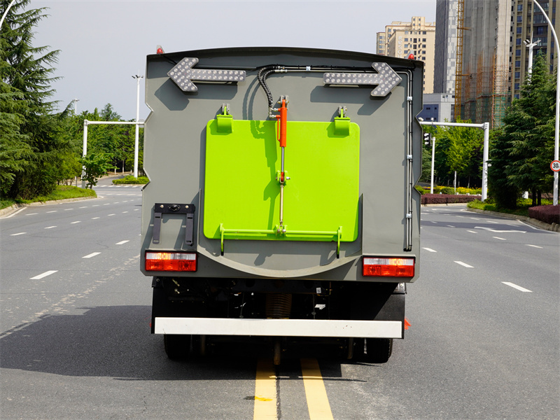 上裝標配:帶4個掃盤、江鈴87馬力副發(fā)動機、三洋馬達、施耐德控制開關、海普瑞斯電磁閥組、無級變速自動離合器、免維護離心式自動風機、尾部LED箭頭指示燈、手動泵應急系統(tǒng)、上海新西山電子水泵,垃圾舉升自卸功能