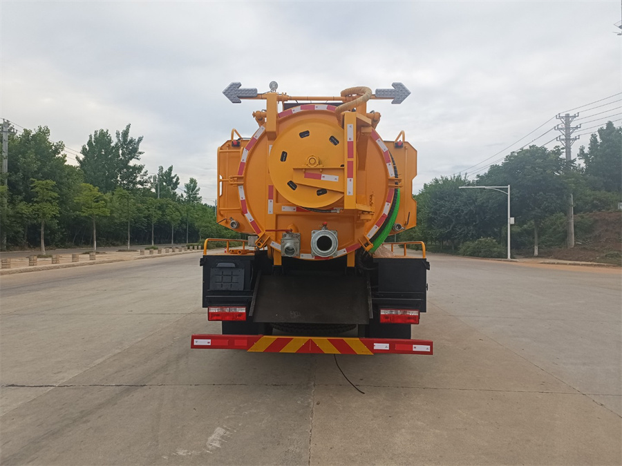 東風(fēng)12方清洗吸污車上裝配置:罐體采用優(yōu)質(zhì)碳鋼板制作,雙耀215L流量高壓泵,SK-12型水循環(huán)泵,配100米19mm高壓管,兩根8米吸污管。,帶氣吹水,水污互通,罐體后吸污口為DN100球閥,排污口為DN150孔徑球閥,罐體后蓋可液壓打開(kāi),罐體可液壓舉升。清水罐4方,污水罐8.5方