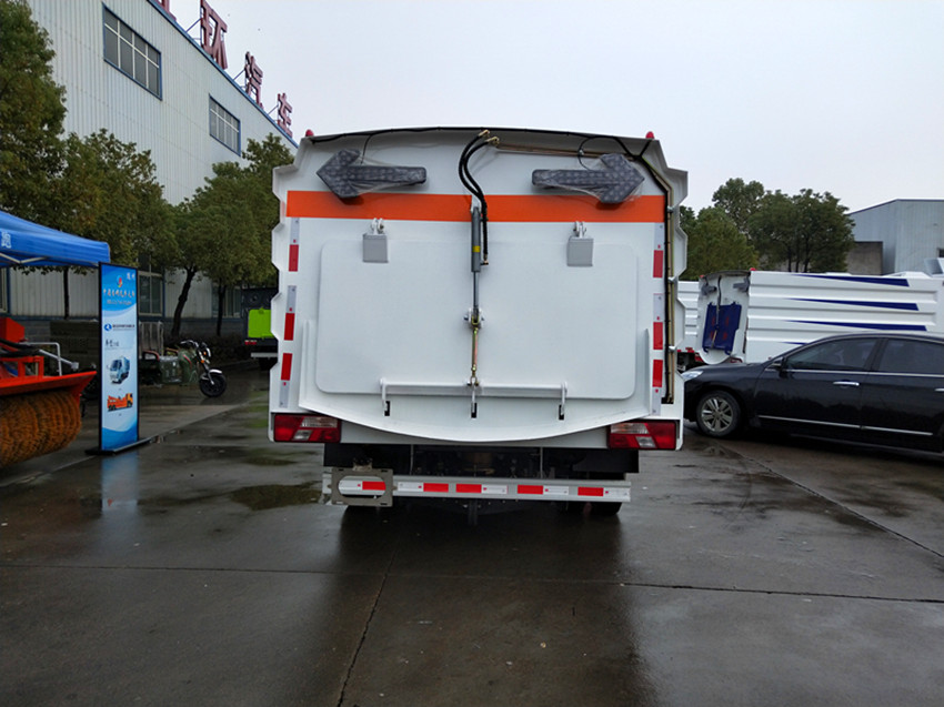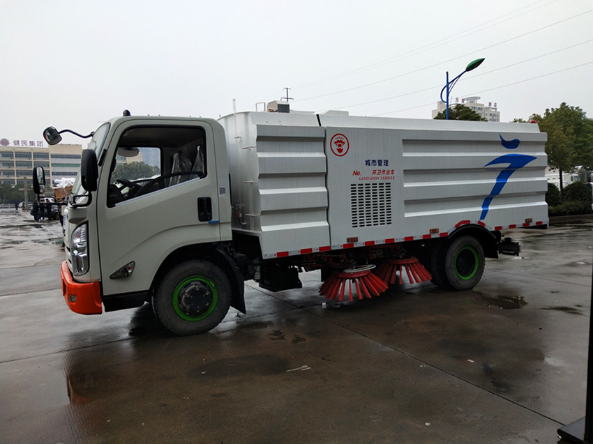 江鈴掃路車隨底盤選裝前面罩,前保險杠,前組合燈具;防護材料:Q235A碳鋼,左右側面防護裝置與專用裝置相干涉,故豁免;后下部防護與車架采用螺栓連接,后部防護斷面尺寸(mm):100×50,后部防護離地高度(mm):410。選裝寬吸盤、兩掃盤結構;ABS系統型號:VIE ABS-II,ABS系統生產廠家:上海萬捷汽車控制系統有限公司。