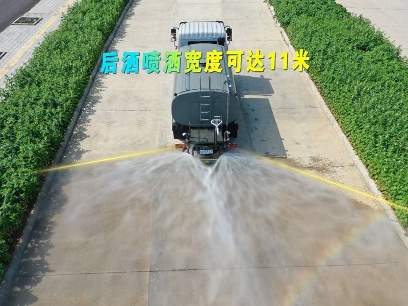 | 東風(fēng)天錦4驅(qū)灑水車專用功能配置:罐體實(shí)際容積約為11立方米,(罐體有效參數(shù)9立方米、額定載質(zhì)量8575kg、)采用武鋼優(yōu)質(zhì)碳鋼板卷壓成型。配備專用灑水泵,自吸自排,前噴后灑、側(cè)噴、后工作平臺(tái)及灑水高壓炮。灑水泵自吸高度為6米左右,整車灑水寬度14米左右,后工作平臺(tái)水炮可調(diào)成:直沖狀、大雨、中雨、小雨、毛毛雨,有效射程≥28米,整車帶接頭、水位計(jì),自流閥。后工作平臺(tái)主管路帶1寸澆花接口,附送2根3米水管,1個(gè)爬梯,兩側(cè)及后保險(xiǎn)杠。 |