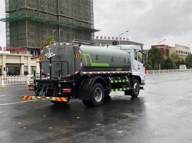 該車主要用于城鄉(xiāng)園林綠化,路面噴灑,除塵和降溫;主要裝置為水罐及噴灑裝置;隨底盤選裝駕駛室;罐體總?cè)萘?10.5立方米;罐體有效容積:10立方米;罐體外形尺寸(長×長軸×短軸)(mm):4200×2480×1480,4200×2300×1450;側(cè)、后防護材料均為:Q235碳鋼,連接方式均為:螺栓連接,后部防護截面尺寸(mm):120×50,后部防護離地高度(mm):450;ABS型號:ABS/ASR-24V-4S/4M,廠家:襄陽東風(fēng)隆誠機械有限責(zé)任公司。選裝油箱電瓶位置。選裝噴灑裝置樣式,選裝后部箭頭燈,選裝后部弧形噴灑裝置,選裝水炮支架位置,選裝高位花灑管道樣式,選裝自動球閥安裝位置,選裝后部大工作平臺,選裝前部自動炮樣式,前伸500mm,整車長度為7850mm。