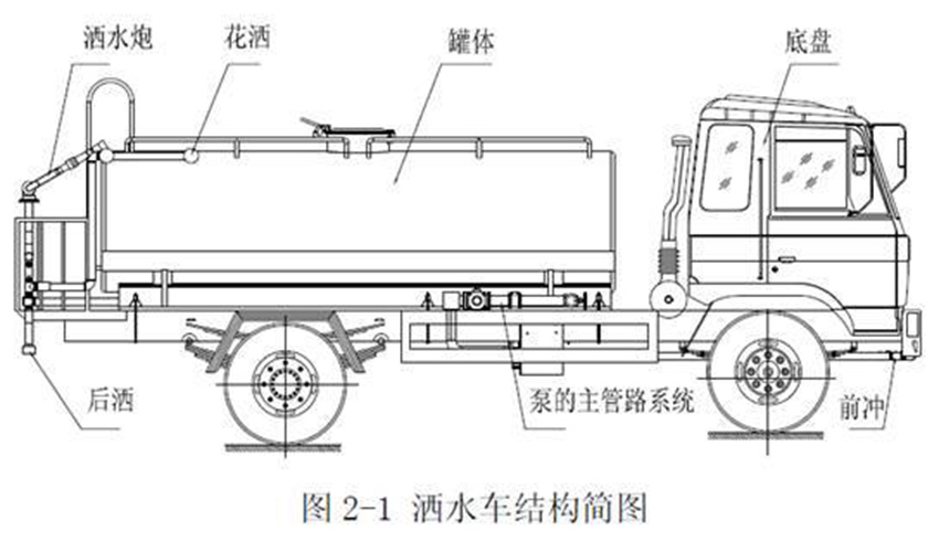 標準配置灑水車主要裝備有:前沖(沖洗公路路面)、后灑(公路路面養護)、側噴、高位側花灑(路邊綠化帶優化);后工作平臺高壓水炮,可調節成柱狀,射程≥28m;也可調節成霧狀,射程≥30米,水泵自吸高度:≤7m,灑水寬度:≥15m。側防護網,自流閥,消防接頭。灑水車水泵為常壓水泵,功能可以抽水、排水。另外根據用戶要求,可加消防泵、噴霧機、農藥卷盤、農藥柱塞泵。罐內可以做防腐防銹、電磁閥氣動閥自動放水等****,以滿足不同用戶需求。