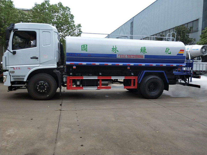 灑水車性能簡介;吸程≧7米,灑水寬度≧14-16米,射程≧25-40米,引水時間<5min,流量60m3/h。前沖(噴)、后灑、帶側噴(花灑)、帶后工作平臺、平臺上安裝綠化灑水高炮(炮噴射形狀可調節:直沖、大雨、中雨、毛毛雨、霧狀、可連續調節,360°旋轉),配消防接口,自流閥,濾網,帶自吸自排功能。配備大功率專用灑水泵,泵可自吸自排,安裝過濾網,帶消防接口,可通過消防栓進水,帶自流閥,隨車選裝20米綠化卷盤,可噴灑農藥,罐體金屬漆。罐體有橢圓和方圓罐兩種,可根據用戶的要求定做。