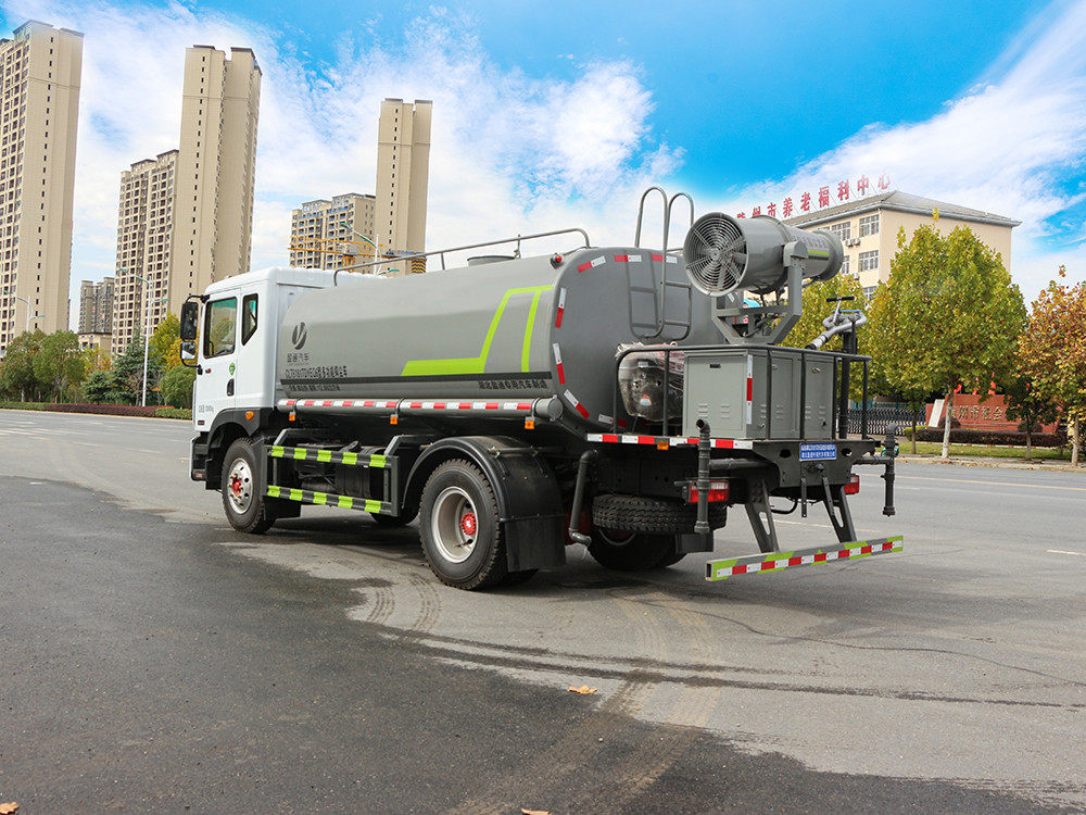 15方灑水車上裝配置: 1、罐體約為 14.2 方, 2、邊燈帶電,罐體尾部上方標配 2 個紅色示寬燈, 3、標配前噴為鴨嘴直沖,標配后沖,用戶可根據(jù)自己的需求,來調 整對沖位置。 4、沖孔平臺(承載能力加強),炮筒后蓋為定制型螺栓卡扣, 5、前噴、后沖、后灑、側噴,綠化高炮開關球閥均采用 50 大通經(jīng) 不銹鋼球閥, 6、新式軸承式水炮,更加耐用, 7、60-90 型水泵, 8、防腐法蘭墊片, 9、鋁制后灑,不易炸開 10、罐體自動焊(美國林肯焊機及電源),拼板自動焊接,封頭環(huán) 縫焊接,無氣孔,焊縫美觀。 11、側護網(wǎng)、后保險杠、均為螺栓連接,方便拆卸,維修方便。 12、塑料擋泥板,替代鐵擋泥板,更加輕便,用螺栓連接,方便拆 卸。 13、前部、后部主管連接處為 6 孔圓法蘭,不易沖墊