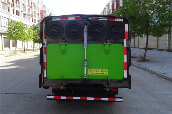 整車詳解,該吸塵車是采用江淮型國五二類原廠汽車底盤改裝,加裝副發動機、風機、清水箱、垃圾箱、中置吸盤,工作視頻探頭,自動脈沖清理功能,液壓系統、專用裝置電控系統和副車架等改裝而成。