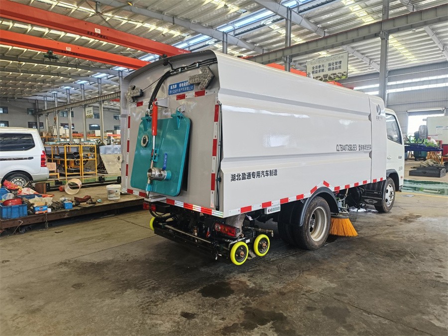 該車主要用于道路清掃,主要專用裝置為箱體和清掃裝置總成;側防護材料為:Q235碳鋼+鋁合金,連接方式為螺栓連接;后防護由專用裝置代替,后防護離地高度(mm):170;蓄電池為磷酸鐵鋰蓄電池,單體生產企業為:寧德時代新能源科技股份有限公司;總成生產企業為:寧德時代新能源科技股份有限公司;驅動電機類型為永磁同步電機,型號為FTTBP100A,額定功率為50kW,峰值功率為100kW,生產企業為北汽福田汽車股份有限公司.ABS型號是CM0953YL,生產企業是廣州瑞立科密汽車電子股份有限公司;后部箭頭燈僅在車輛作業時開啟.
